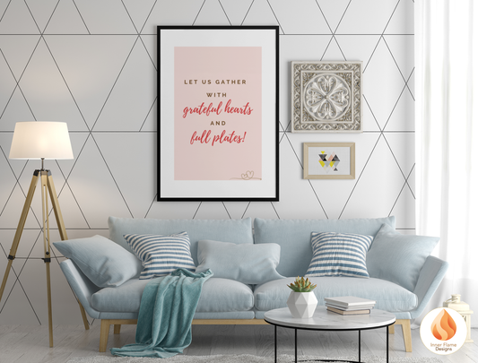 Motivational Poster with Quote on Family and Togetherness 5 - "Let Us Gather With Grateful Hearts And Full Plates!"